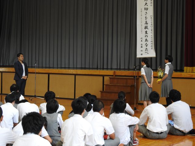 7月6日(金) しなやかな心の育成事業として,また交通安全教育の一環として,命の大切さを学ぶ講演会を実施しました。講師には東京都のラポール・トーク・コミュニティの代表である内藤佑様をお迎えし,「生きる力を育むための特別授業~父親の死から学んだ命の大切さを高校生のあなたへ~」というタイトルで講演をいただきました。