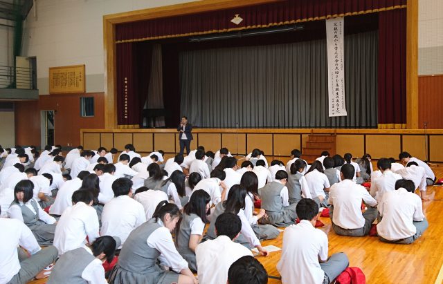 山梨県立塩山高等学校 > お知らせ > 「しなやかな心の育成」講演会を行いました。 2018年7月9日カテゴリー: お知らせ 「しなやかな心の育成」講演会を行いました。 7月6日(金) しなやかな心の育成事業として,また交通安全教育の一環として,命の大切さを学ぶ講演会を実施しました。講師には東京都のラポール・トーク・コミュニティの代表である内藤佑様をお迎えし,「生きる力を育むための特別授業~父親の死から学んだ命の大切さを高校生のあなたへ~」というタイトルで講演をいただきました。 暑い体育館の中ではありましたが,講師の実体験をもとにした,命に向き合う講話内容に,生徒や教員,聴講希望の保護者の方なども真剣に聞き入っていました。最後には生徒会長より生徒を代表してのお礼の言葉と花束贈呈が行われました。また,生徒全員に対して,講師へ講話のお礼と感想,質問などを送る事後指導を行いました。