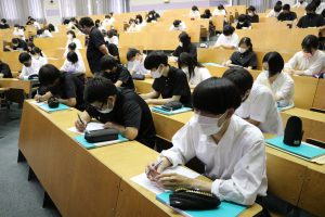 山梨県立塩山高等学校 > 教育活動 > 総合的な探究の時間活動状況 > 「マナー講座」が行われました。(2年生対象) 2021年7月14日カテゴリー: 総合的な探究の時間活動状況 教育活動 「マナー講座」が行われました。(2年生対象) 7月13日(火)に、「マナー講座」が2年生対象に行われました。これから行われる予定のインターンシップやインタビュー実践では、外部の方と話をする機会があります。その際、どのようなマナーが大切なのか、講師にプルミエールキャリア代表の田川浩子先生をお迎えし、・挨拶、正しい言葉遣い・身だしなみ・時間を守る、報連相・人と話す際の態度、与える印象等を分かりやすく教えていただきました。生徒たちは、真剣な表情で講義を受けていました。