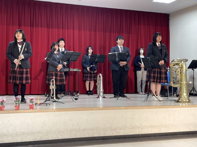 11月25日に第65回同窓会総会が甲州市中央公民館で行われました。総会に続いて行われた懇親会では、現吹奏楽部、書道部の生徒が同窓生の皆様の前でパフォーマンスを披露いたしました。先輩方を前に生徒たちは緊張した様子でしたが、同窓生の皆様が心から楽しんでくださっている姿に、また来年もやりたい!と終了後には興奮気味に話していました。