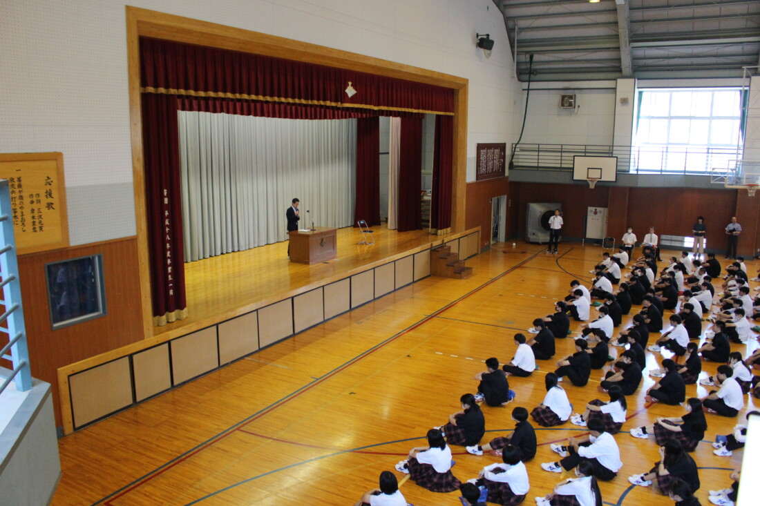 22日に1学期終業式を行いました。終業式では校長先生のお話をいただき、教務係や生徒指導係の先生からは1学期の振り返りと夏休みの過ごし方についての話がありました。