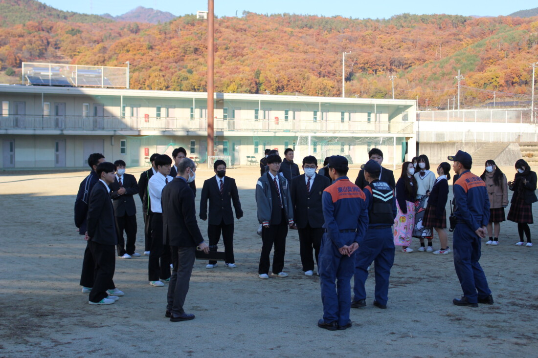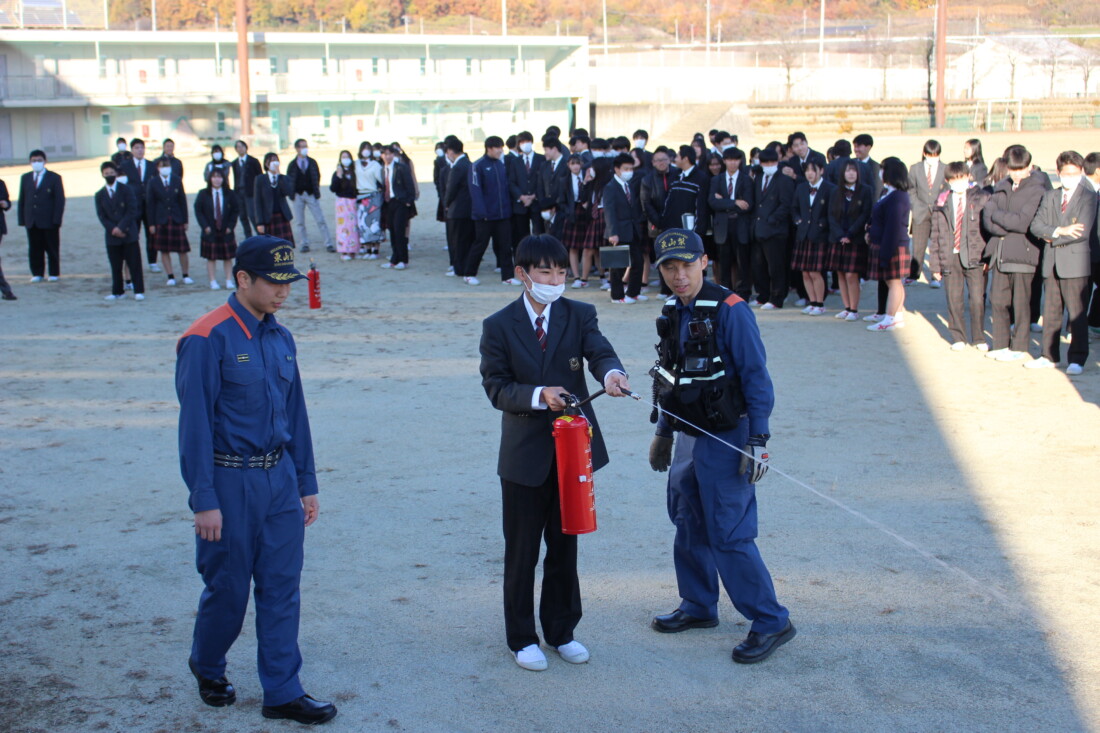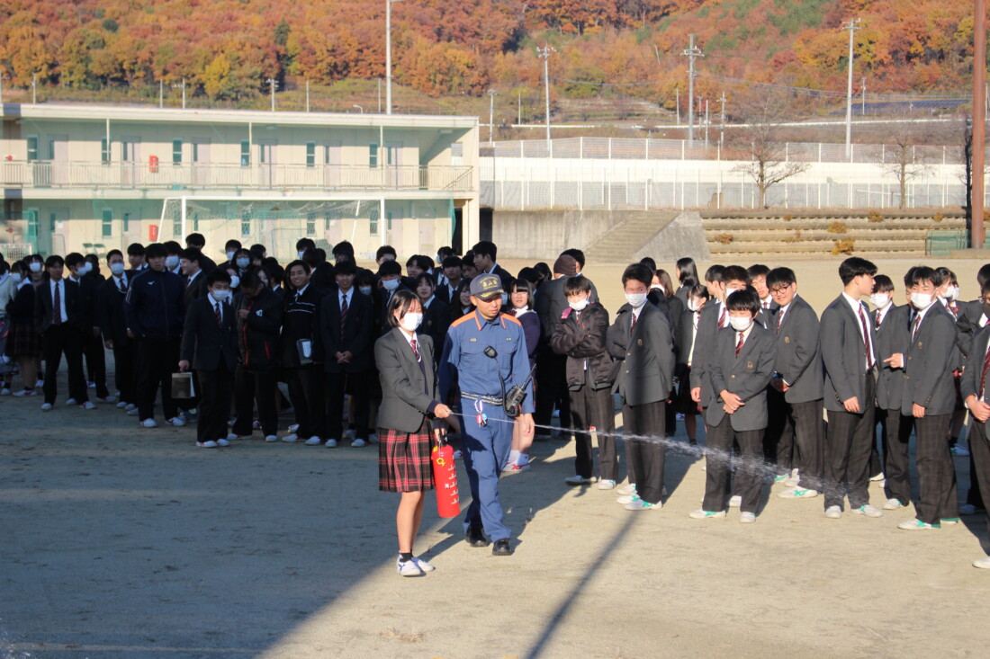 山梨県立塩山高等学校 > お知らせ > 避難訓練 2024年12月6日カテゴリー: お知らせ 避難訓練 5日に火災を想定した避難訓練を行いました。避難訓練は今年2回目となるため、生徒たちは避難経路を間違えることなく迅速な避難行動ができました。避難後は地元の消防署の方から講評を頂き、消火器の使い方を学びました。災害はいつ起こるのかわかりません。日頃の備えが大切ですね。