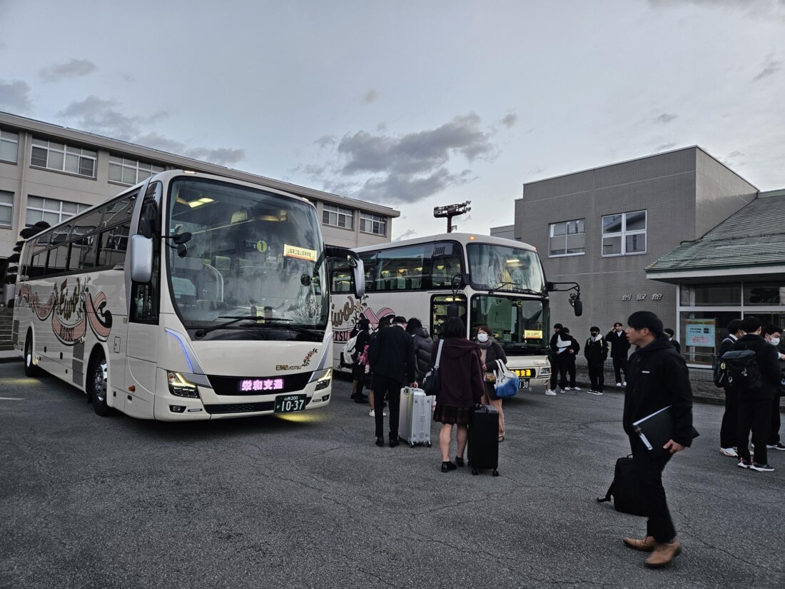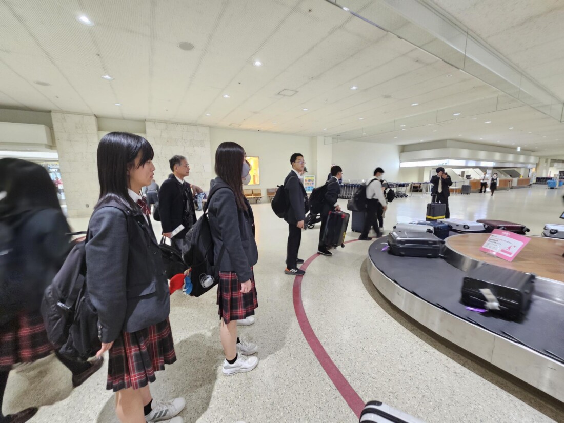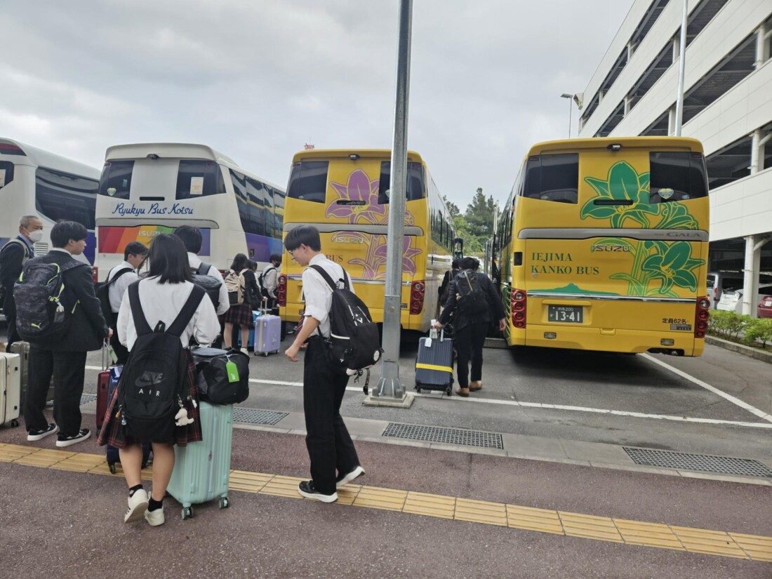 山梨県立塩山高等学校 > 学校行事 > 修学旅行◇速報◇ > 令和6年度 第2学年修学旅行 1日目 2024年12月8日カテゴリー: 修学旅行◇速報◇ 学校行事 令和6年度 第2学年修学旅行 1日目 12月8日(日)修学旅行団1日目の様子です。 ①出発直前 予定より5分前に学校を出発できました。 ②羽田空港にて ワクワクが止まりません。 ③那覇空港にて(1) 荷物受け取りの様子。「私の荷物はまだかな。」 ④那覇空港にて(2) バスに乗り込み、さあ出発です。 この後、平和祈念公園・資料館を訪れ、宿舎へ向かいます。 夜は、国際通りで自主研修を予定しています。