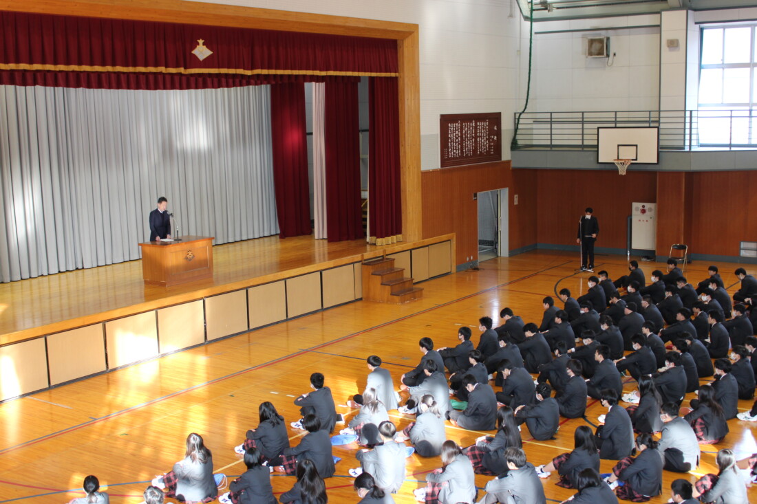 1月9日に3学期始業式を行いました。有意義な冬休みを過ごせたのでしょう。生徒達は晴れ晴れとした表情で校長先生の話を聞いていました。