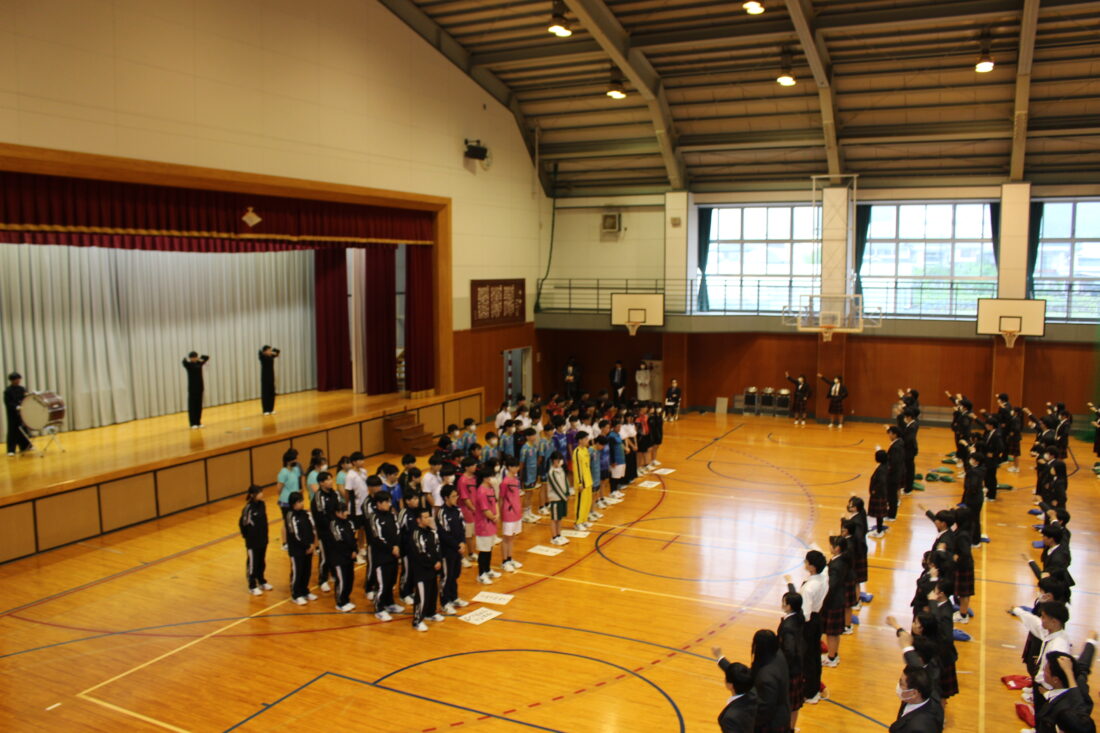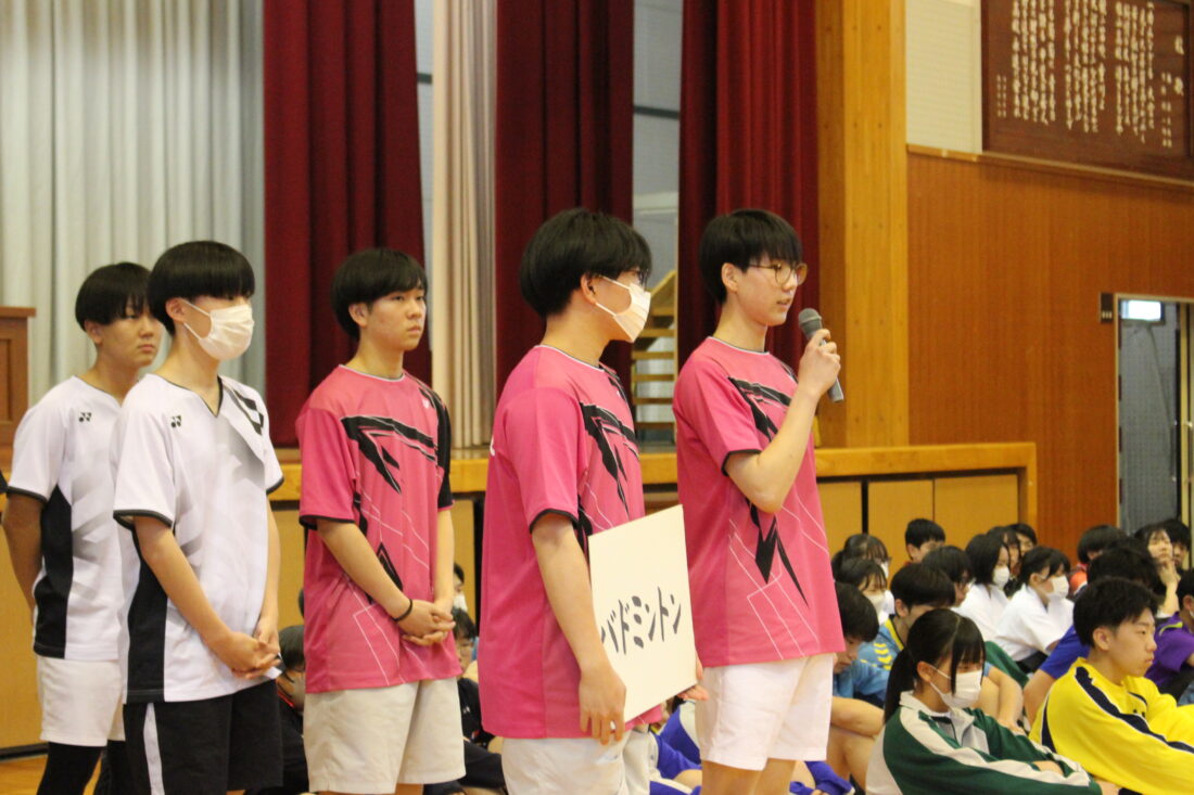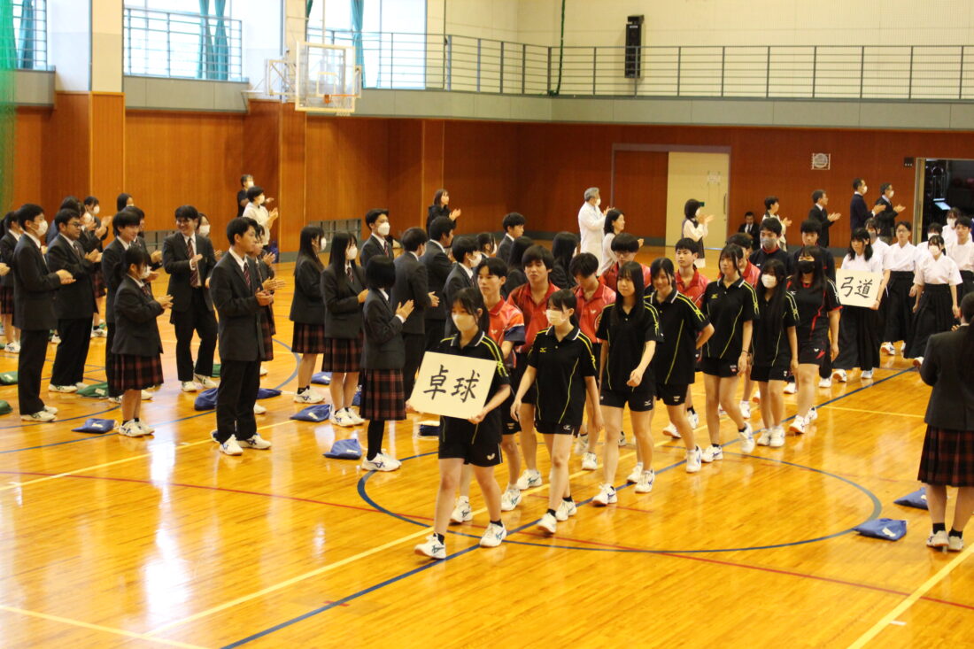 2日に県高校総体 壮行会を行いました。運動部の生徒たちがユニフォーム姿で体育館に入場し、意気込みを語ってくれました。応援団が壇上に上がり、大会に出場する仲間たちへエールを送りました。頑張ってきた日々の成果を存分に発揮し、全力で頑張ってください。