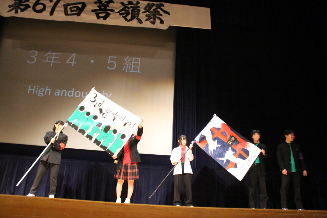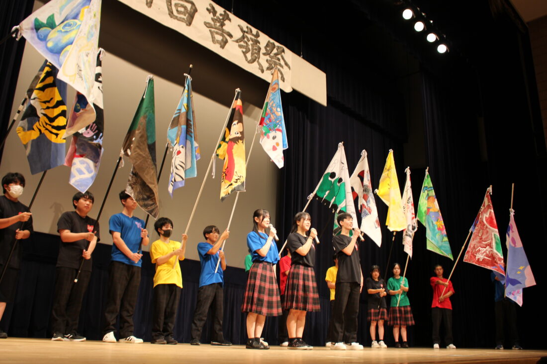 7月3日・4日の両日、第67回菩嶺祭を開催しました。3日は甲州市民文化会館にて各クラスのステージ発表や、有志発表を行い、4日には本校中庭にて2・3年生による露店企画「名店街」を行いました。クラスステージ発表では、各クラスでテーマを決めて劇やダンスなどを行い、有志発表ではソロボーカリストやソロドラマーによる演奏やチームによるダンスパフォーマンス、本校応援団による演舞が行われました。