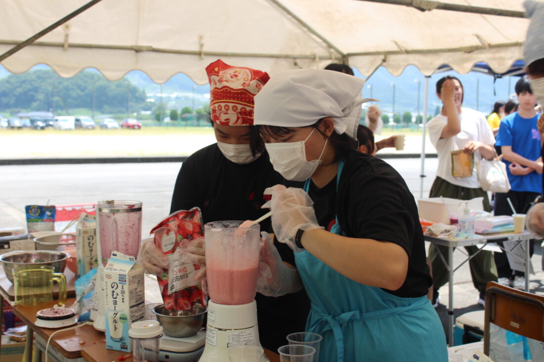 翌日の名店街では、うどんや焼きそば、スムージー、ベビーカステラなど生徒たちが自分たちで調理、販売をしました。両日ともに生徒たちは大いに楽しみ、盛り上がりました。