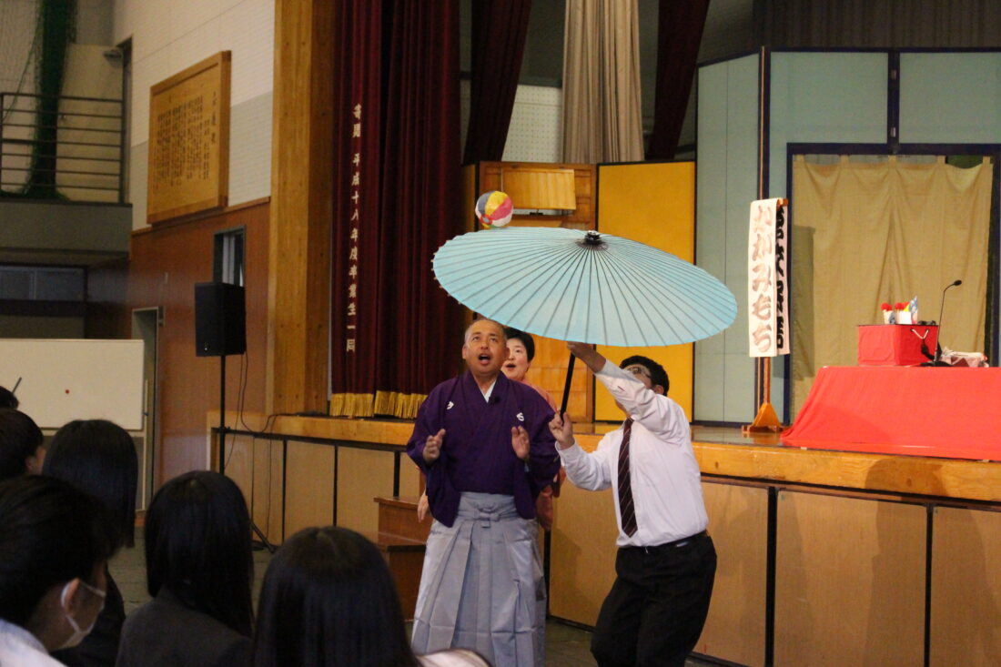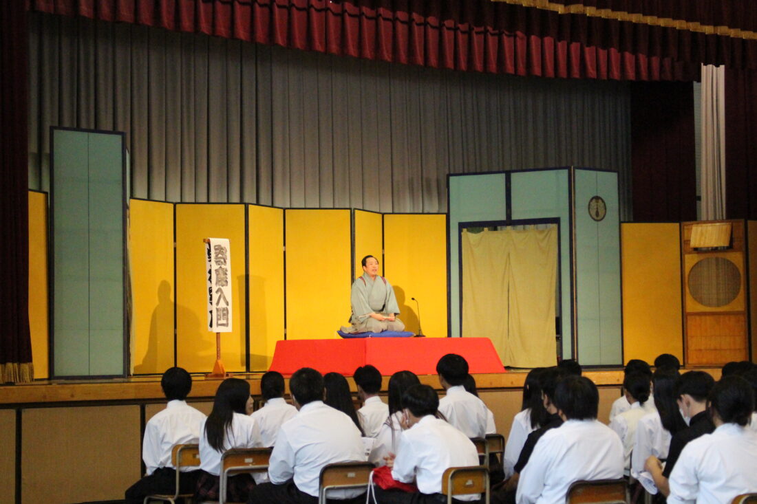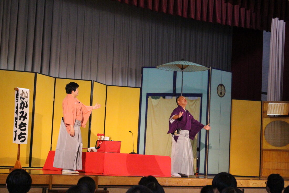 生徒たちは普段中々触れることのない古典芸能に、最初は戸惑いや周囲を窺っている雰囲気もみられましたが、すぐに笑いどころを理解し、自然と拍手が沸いてきたりと芸術鑑賞会を充分に満喫できたようです。芸術の秋に触れる、良い機会となりました。