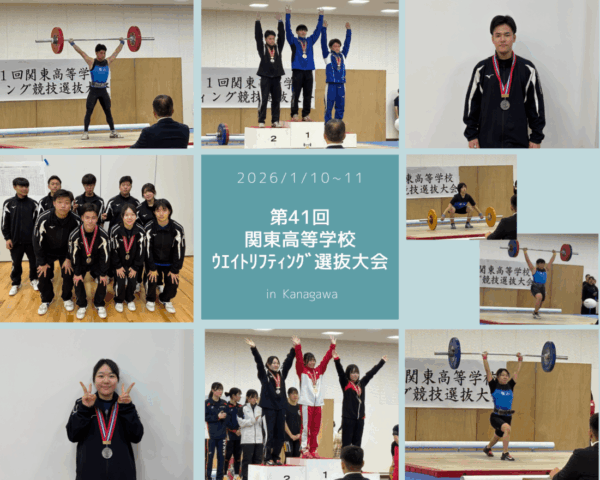 令和8年1月10日・11日に神奈川県立スポーツセンターにおいて第41回関東高等学校ウエイトリフティング選抜大会が開催されました。本校からは男子56kg級に依田崇良さん(2年)、94kg級に初鹿野拓弥さん(2年)、女子48kgに高埜茉央さん(2年)、58kgに雨宮葵空さん(2年)が出場しました。