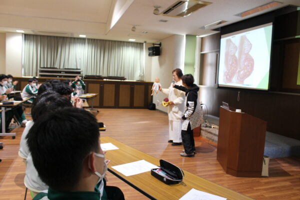 2月12日に保健講話「いのちの教室」を開講しました。当日は講師として、いのちの教室代表の福田紀恵先生に来校いただき、性や妊娠・出産について正しい知識や命を育むとは何か、についてお話しいただきました。