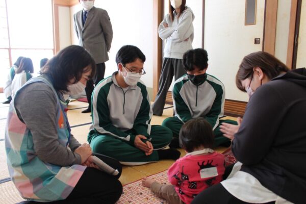 講話の後は妊娠疑似体験、赤ちゃん抱っこ体験、おむつ替え体験を行いました。特に赤ちゃん抱っこ体験では、生徒達は本物の赤ちゃんと触れ合い、緊張しながらも「可愛い・・・!」と目を輝かせていました。