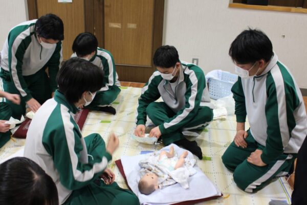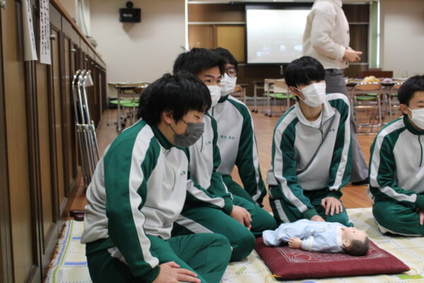 山梨県立塩山高等学校 > 教育活動 > 保健 > 保健講話「いのちの教室」 2026年2月13日カテゴリー: お知らせ 教育活動 保健 保健講話「いのちの教室」 2月12日に保健講話「いのちの教室」を開講しました。当日は講師として、いのちの教室代表の福田紀恵先生に来校いただき、性や妊娠・出産について正しい知識や命を育むとは何か、についてお話しいただきました。 講話の後は妊娠疑似体験、赤ちゃん抱っこ体験、おむつ替え体験を行いました。特に赤ちゃん抱っこ体験では、生徒達は本物の赤ちゃんと触れ合い、緊張しながらも「可愛い・・・!」と目を輝かせていました。 今回、講師を務めてくださいました福田先生、甲州市役所保健師の皆様、お母さま方と赤ちゃんにこの場を借りてお礼申し上げます。
