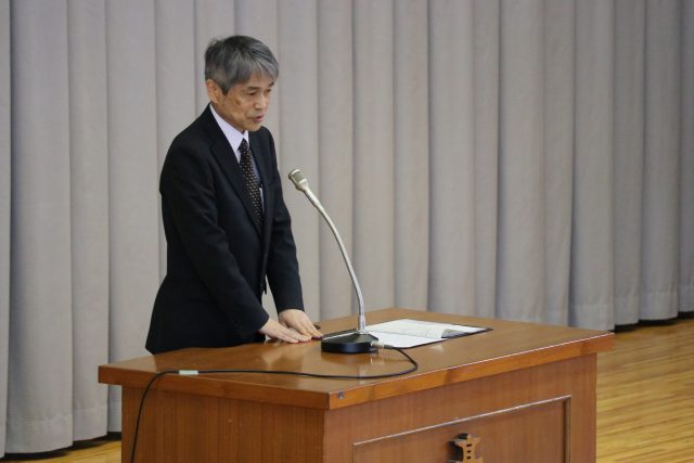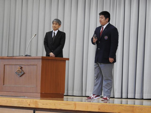 壇上で話す 村田優希(3年)