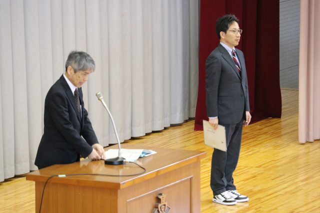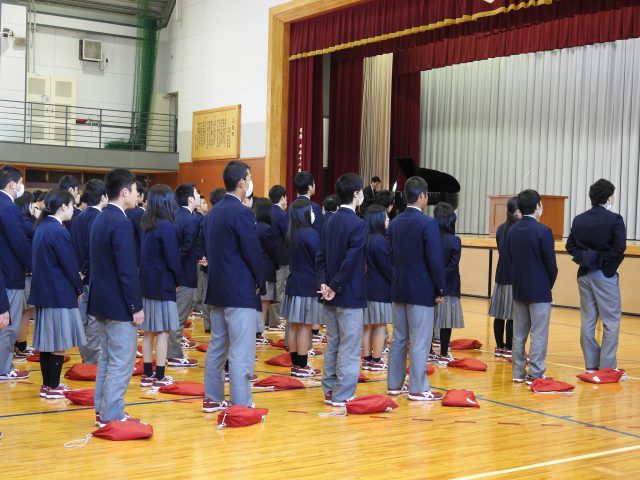 新年度がスタートしました。午前9:00から体育館で新任式・始業式がおこなわれました。集まった2、3年生を前に、向山校長先生より10名の新任の先生方をご紹介いただき、教頭先生が代表してご挨拶されました。引き続きおこなわれた始業式では、校長先生より生徒に向けて、たとえ小さくても目標を立てることの大切さ。そこに向かって一年間努力して取り組んでいくことの大切さ。また人生はその積み重ねであるという貴重なお話をいただきました